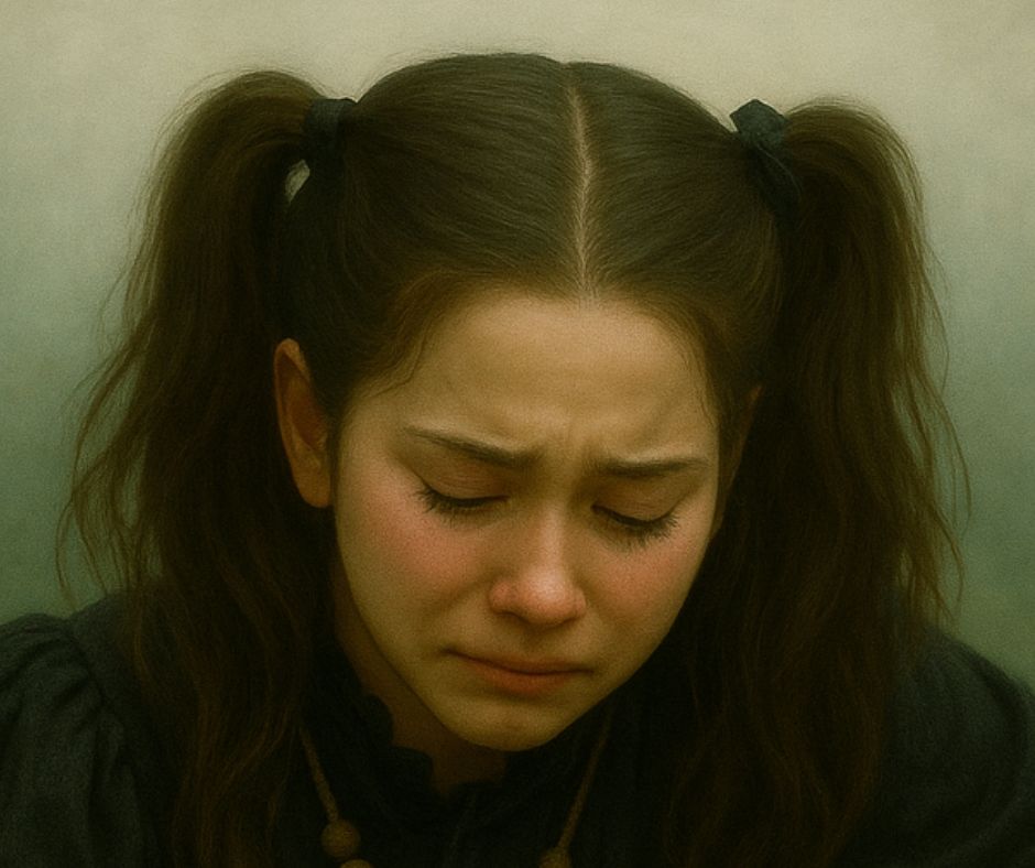 眉間にしわを寄せた若い女性…。意思の強さを感じます。